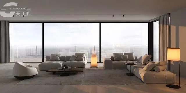 墻面水泥漆以極簡灰色效果映入眼簾,打造個性化,高品質的空間,逼真的藝術仿水泥效果,適用于不同基材,內外墻均可,表面即平整光滑也可呈現其清水不一的自然反應色,水泥漆是混凝土的最高級表達形式,它顯示的是一種最本質的美感,體現的是”素面朝天”的品味。
